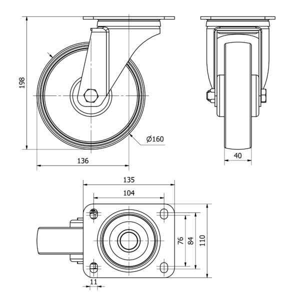 Rueda poliamix giratoria Alex diametro 160 mm. modelo TW0045 EAN 8422202000459