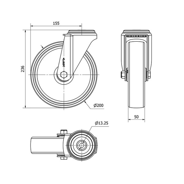 Rueda poliamix giratoria Alex diametro 200 mm. 2-0147 EAN 8422202201474