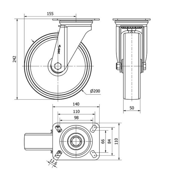 Rueda poliamix giratoria Alex diametro 200 mm. modelo 2-0243 EAN 8422202202433