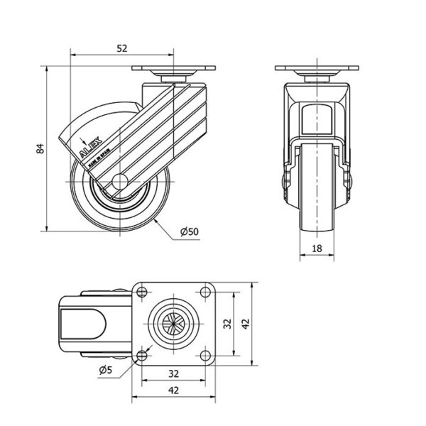 Rueda poliamix giratoria Alex diametro 50 mm. modelo 1-0756