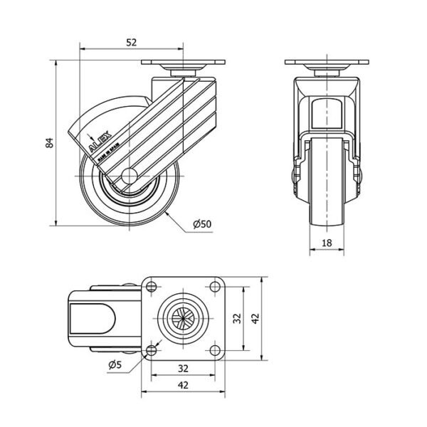 Rueda poliamix giratoria Alex diametro 50 mm. modelo 1-0757
