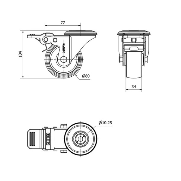 Rueda poliamix giratoria Alex diametro 80 mm. 2-0123