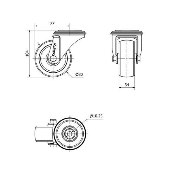 Rueda poliamix giratoria Alex diametro 80 mm. modelo 2-1368
