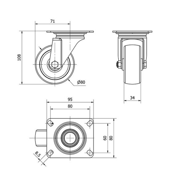 Rueda poliamix giratoria Alex diametro 80 mm. modelo 2-3077 EAN 8422202230771