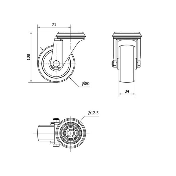 Rueda poliamix giratoria Alex diametro 80 mm. modelo 2-3086