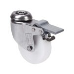 La serie de ruedas Alex ZLI INOX-UT son de poliamix blanco, con todos sus componentes de acero inoxidable (AISI-304), indicadas para soportar cargas hasta 120 Kg. Se utilizan en exteriores, carros de transporte de alimentación, cantinas, comedores, restaurantes, empresas de alimentación, máquinas de embalajes, cintas transportadoras, maquinas ligeras para la construcción, granjas avícolas, mataderos, cárnicas, lácteas y químicas. UT: Indeformables, muy resistente y de fácil arranque y deslizamiento.