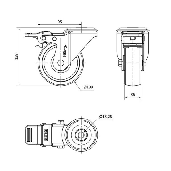 Rueda poliamix giratoria con freno Alex diametro 100 mm. modelo 2-2352