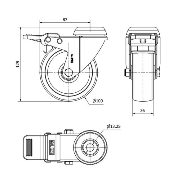 Rueda poliamix giratoria con freno Alex diametro 100 mm. modelo 2-4769
