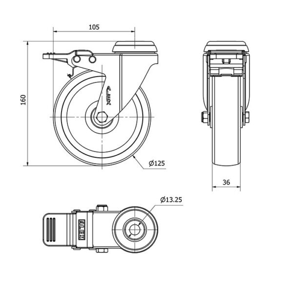 Rueda poliamix giratoria con freno Alex diametro 125 mm. modelo 2-4771