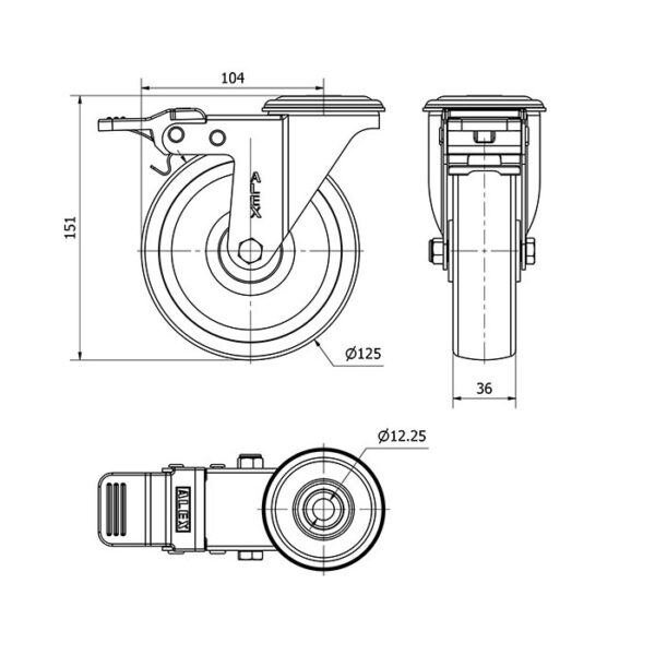Rueda poliamix giratoria con freno Alex diametro 125 mm. modelo 2-4922