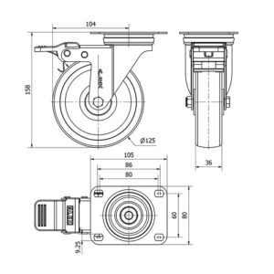 Rueda poliamix giratoria con freno Alex diametro 125 mm. modelo 2-4950