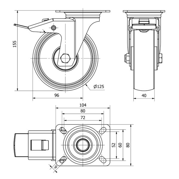 Rueda poliamix giratoria con freno Alex diametro 125 mm. modelo TW0054