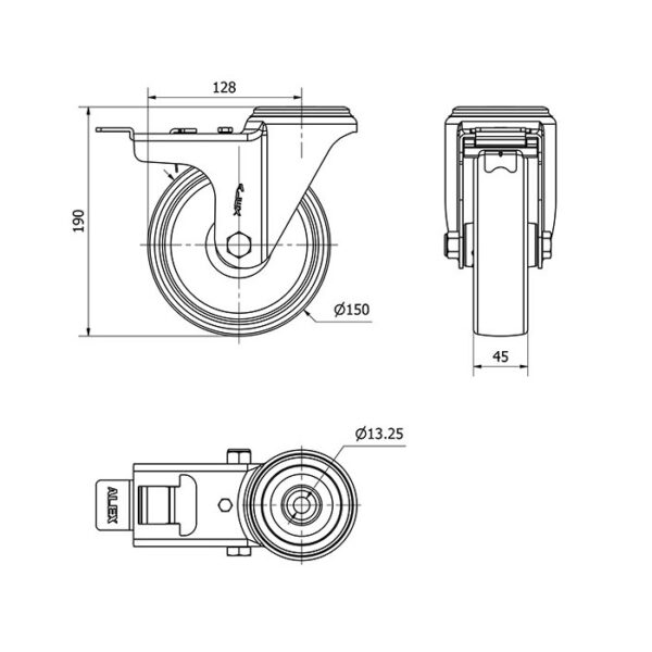 Rueda poliamix giratoria con freno Alex diametro 150 mm. modelo 2-1650