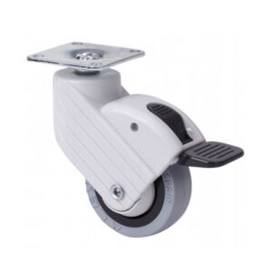 La serie de ruedas Alex HP-PGI son de goma gris, indicadas para soportar cargas de hasta 22 Kg. Se utilizan en expositores, sector mobiliario, restauración, muebles comerciales, carros de suero, taburetes, mobiliario, restauración, sala de partos, útiles de hospitales, mobiliario clínico sanitario, porta goteros y carros móviles. PGI GRIS: No ralla ni mancha el suelo. Apta para todo tipo de superficies.