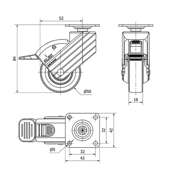Rueda poliamix giratoria con freno Alex diametro 50 mm. modelo 1-0760