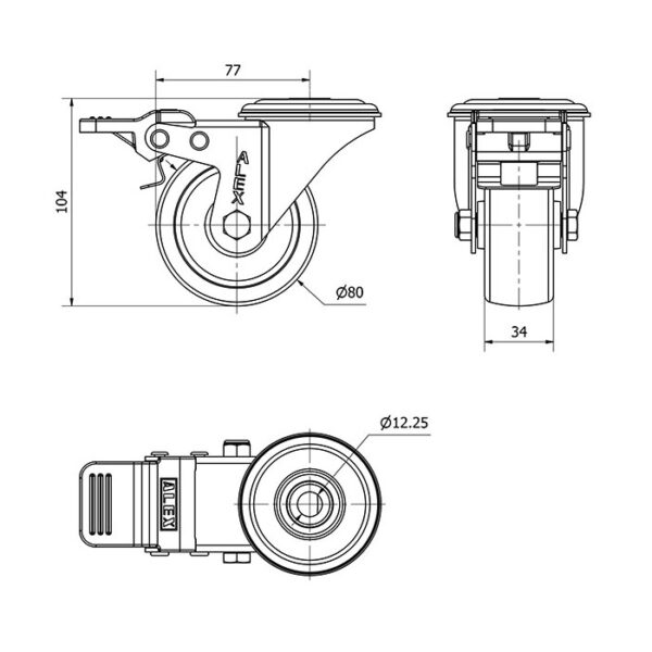 Rueda poliamix giratoria con freno Alex diametro 80 mm. modelo 2-4150