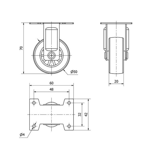 Rueda policarbonato fija Alex diametro 50 mm. modelo 1-0600