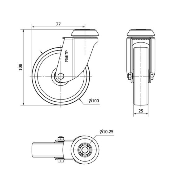 Rueda policarbonato giratoria Alex diametro 100 mm. modelo 2-2282