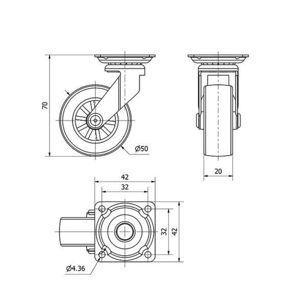 Rueda policarbonato giratoria Alex diametro 50 mm. modelo 1-0512