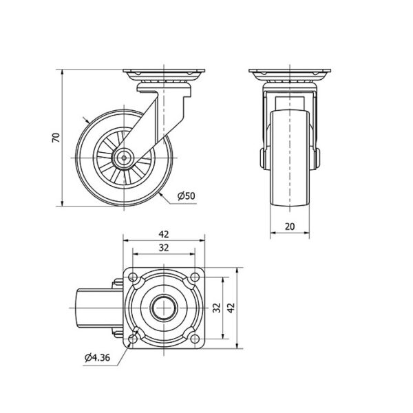Rueda policarbonato giratoria Alex diametro 50 mm. modelo 1-0593