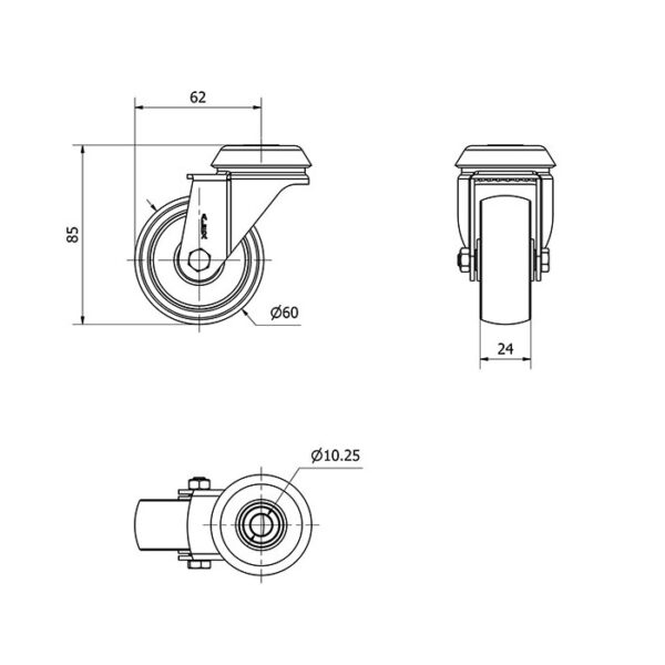 Rueda policarbonato giratoria Alex diametro 60 mm. modelo 2-2145
