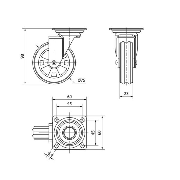 Rueda policarbonato giratoria Alex diametro 75 mm. modelo 1-0527 EAN 8422202105277