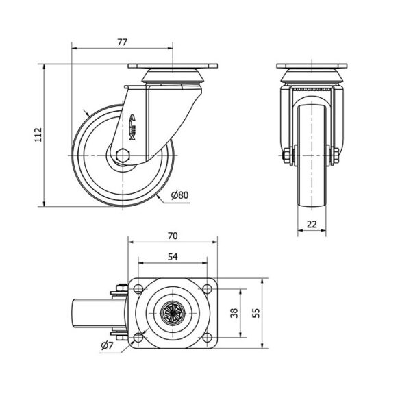 Rueda policarbonato giratoria Alex diametro 80 mm. modelo 2-2276