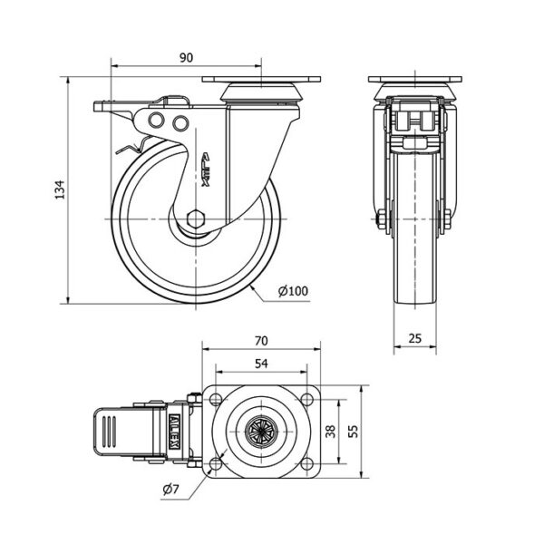 Rueda policarbonato giratoria con freno Alex diametro 100 mm. modelo 2-2281