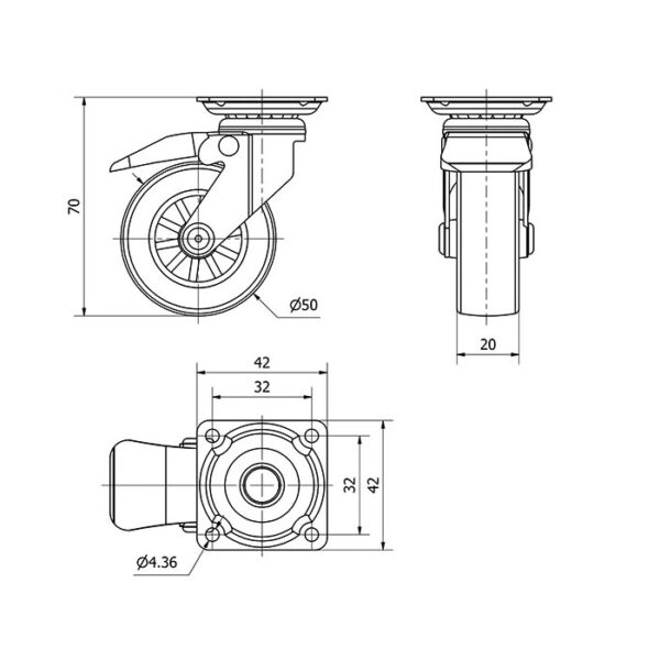 Rueda policarbonato giratoria con freno Alex diametro 50 mm. modelo 1-0607