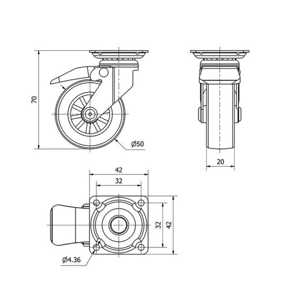 Rueda policarbonato giratoria con freno Alex diametro 50 mm. modelo 1-0608