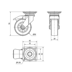 Rueda policarbonato giratoria con freno Alex diametro 50 mm. modelo 1-0609
