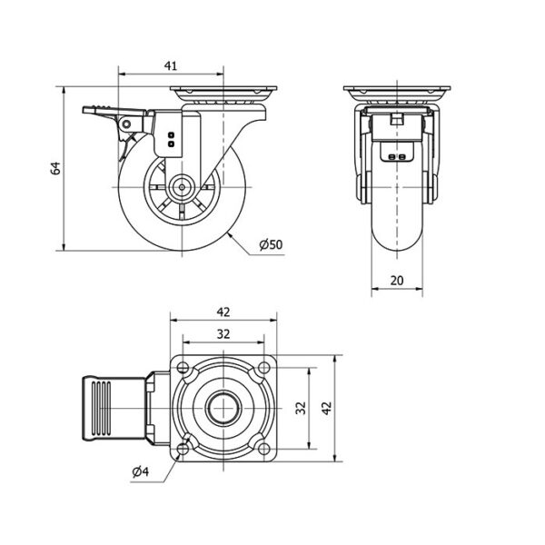 Rueda policarbonato giratoria con freno Alex diametro 50 mm. modelo 1-0660