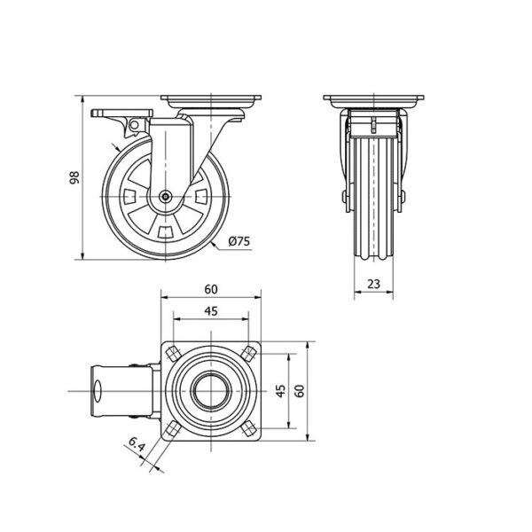 Rueda policarbonato giratoria con freno Alex diametro 75 mm. modelo 1-0533