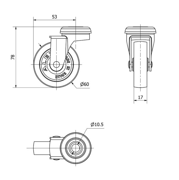 Rueda polipropileno giratoria Alex diametro 60 mm. modelo 3-0007 EAN 8422202300078