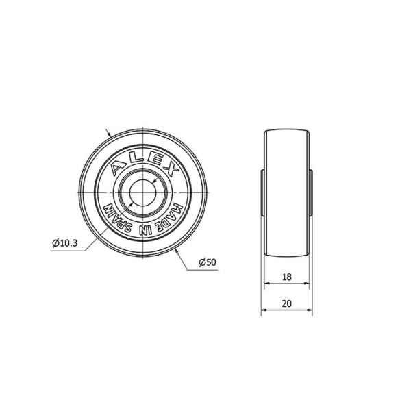 Rueda polipropileno-plastico aro suelto Alex diametro 50 mm. modelo 1-0317 EAN 8422202103174