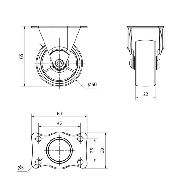 Rueda polipropileno-plastico fija Alex diametro 50 mm. modelo TW0135