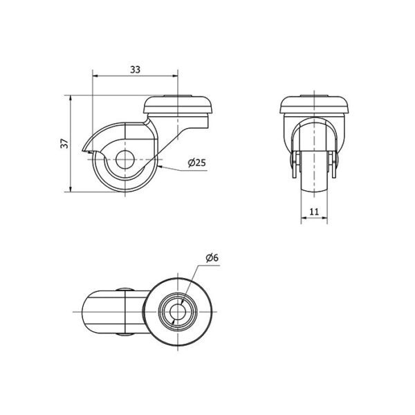 Rueda polipropileno-plastico giratoria Alex diametro 25 mm. modelo 1-0237