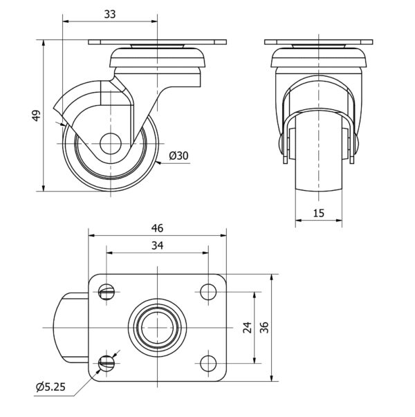 Rueda polipropileno-plastico giratoria Alex diametro 30 mm. modelo 3-0016