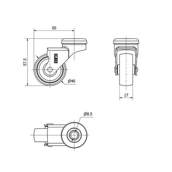 Rueda polipropileno-plastico giratoria Alex diametro 40 mm. modelo 1-0719