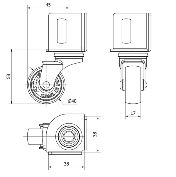 Rueda polipropileno-plastico giratoria Alex diametro 40 mm. modelo 3-0009