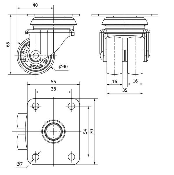 Rueda polipropileno-plastico giratoria Alex diametro 40 mm. modelo 3-0012 EAN 8422202300122