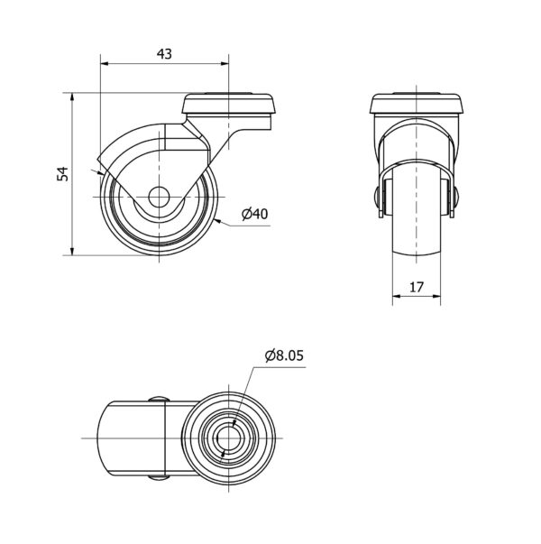 Rueda polipropileno-plastico giratoria Alex diametro 40 mm. modelo 3-0020