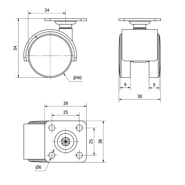 Rueda polipropileno-plastico giratoria Alex diametro 40 mm. modelo TW0109 EAN 8422202001098