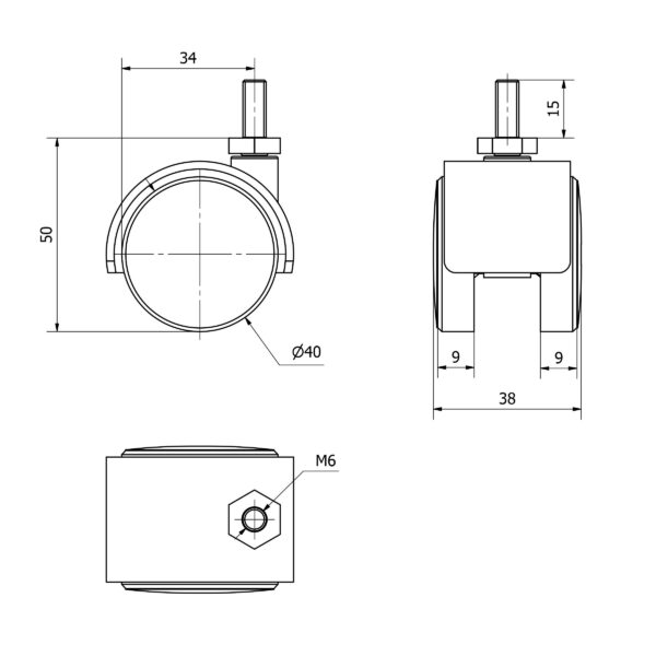 Rueda polipropileno-plastico giratoria Alex diametro 40 mm. modelo TW0113 EAN 8422202001135