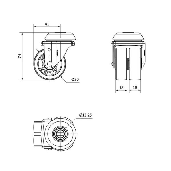 Rueda polipropileno-plastico giratoria Alex diametro 50 mm. modelo 1-0567