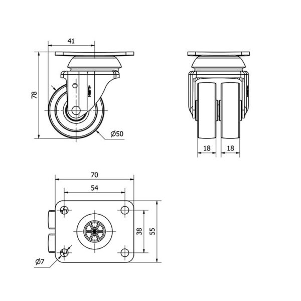 Rueda polipropileno-plastico giratoria Alex diametro 50 mm. modelo 2-0039