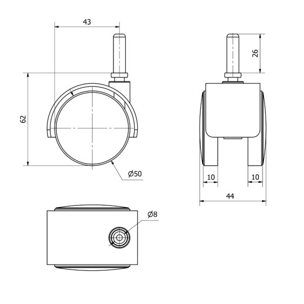 Rueda polipropileno-plastico giratoria Alex diametro 50 mm. modelo TW0119