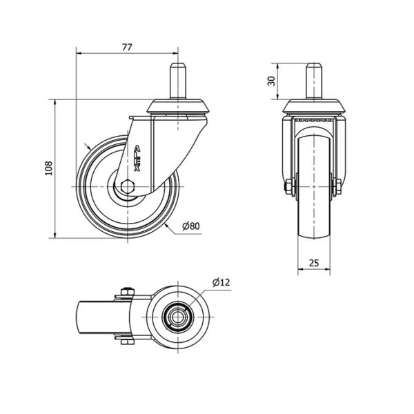 Rueda polipropileno-plastico giratoria Alex diametro 80 mm. modelo 2-1921