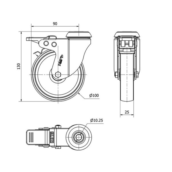 Rueda polipropileno-plastico giratoria con freno Alex diametro 100 mm. modelo 2-3068