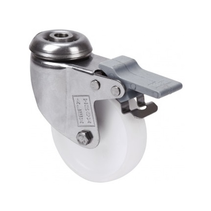 La serie de ruedas Alex BHI INOX-BP son de poliamix blanco, con todos sus componentes de acero inoxidable (AISI-304), indicadas para soportar cargas hasta 80 Kg. Se utilizan en exteriores, carros de transporte de alimentación, cantinas, comedores y restaurantes. BP: Indeformables, resistentes, de fácil arranque y desplazamiento.